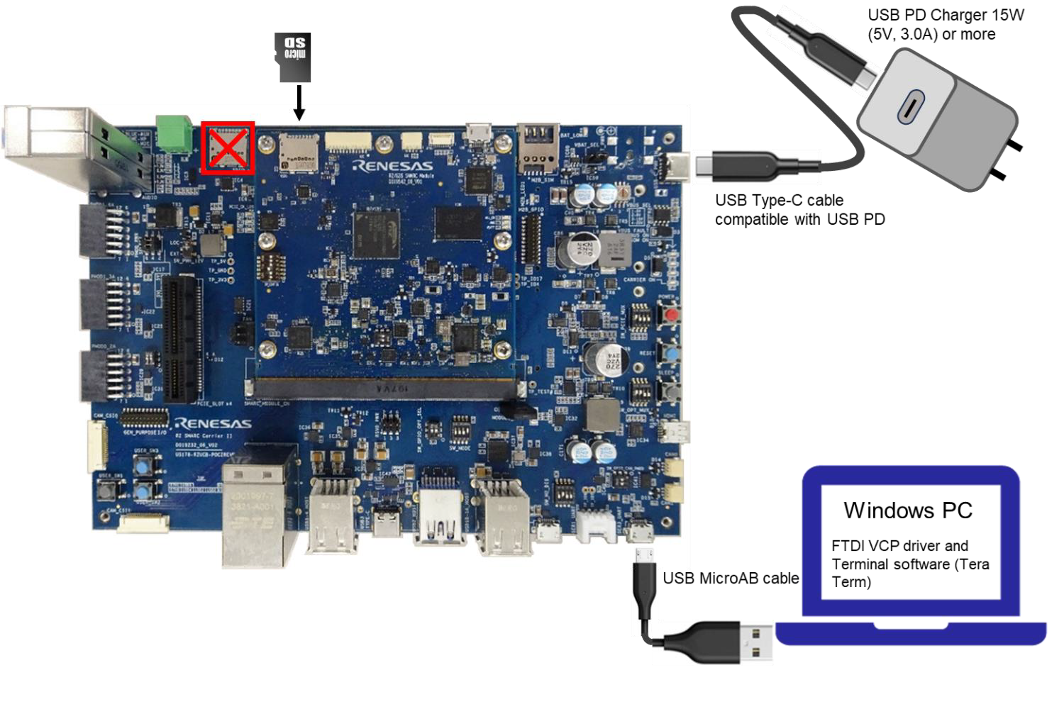 Please create a microSD card (see Step 4: Deploy Renesas RZ Linux BSP Plus).