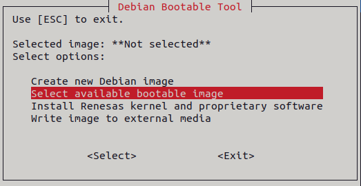 The Debian Bootable Tool is a Bash script designed to streamline the creation and customization of bootable ARM64 Linux disk images for Debian 13 on the RZ/G platforms. It offers a user-friendly, menu-based interface using whiptail and zenity, making it easy to create and apply custom configurations. The tool also supports writing images directly to an external media (e.g., SD card).