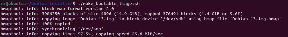 Debian_13.imgtosdb Transcend (59,5G). Wait until the image is written.