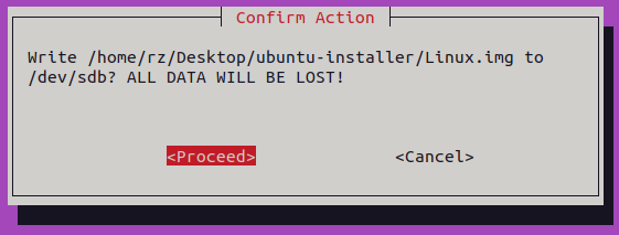 sdb Transcend (59,5G)). Press OK to continue.Press Proceed to confirm.