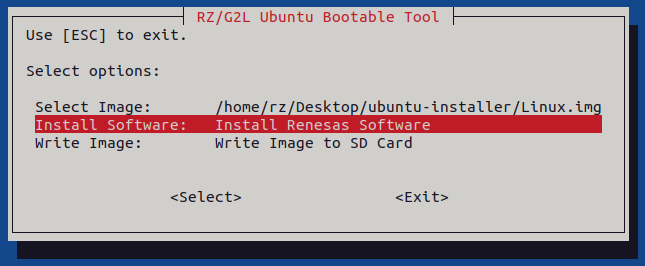 make_bootable_tool.sh: Contain the main menu selection.install_qemu.sh: Install QEMU version 8.2.9.run_qemu.sh: Start QEMU VM to install Ubuntu 24.04 from the ISO into the image.install_renesas_sw.sh: Set up environment for chroot method to install software packages.install_packages_ubuntu.sh: Install software packages inside an Ubuntu chroot environment.attach_sd.sh: Write bootable image to SD card.settings.txt: Save previously used image names.