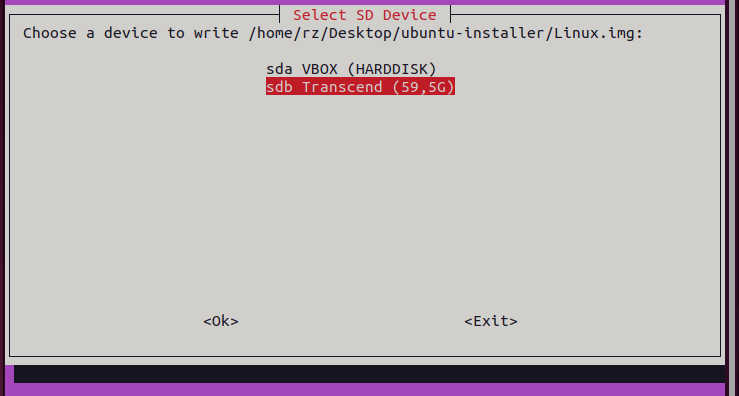 Linux.imgtosdb Transcend (59,5G).If successful, the following dialog box will appear. Press OK to continue.