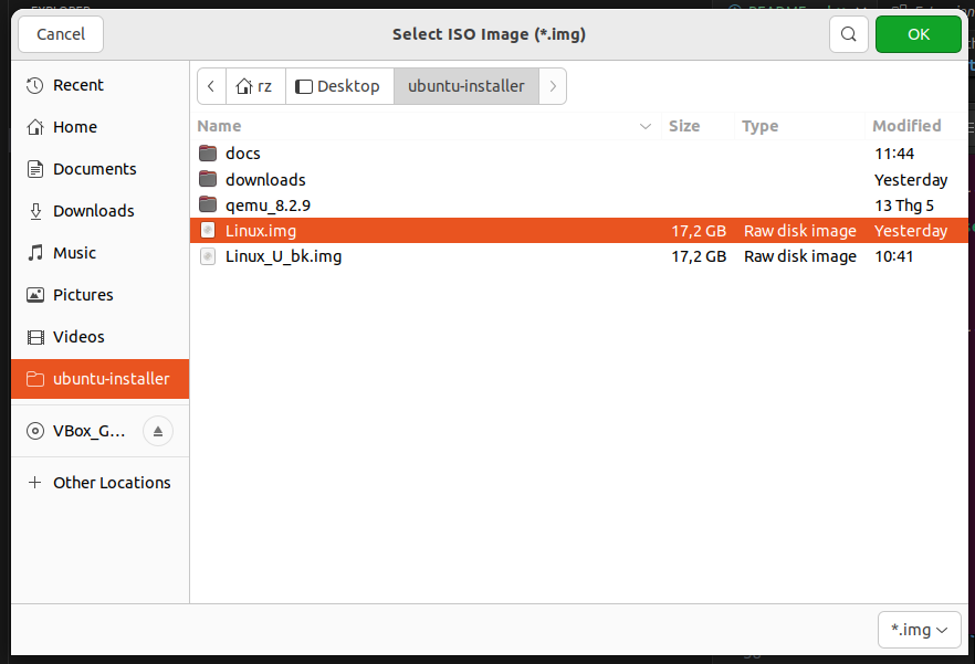 Linux.img) and select its location. Next, press OK to confirm.Enter the administrator password. The tool will then download, build, and install QEMU version 8.2.9. If it's already installed, this step will be skipped.