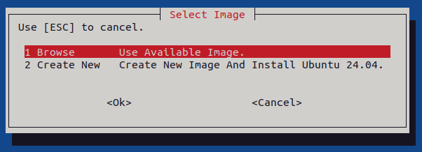 - 1 Browse: Select an image with Ubuntu 24.04 pre-installed.