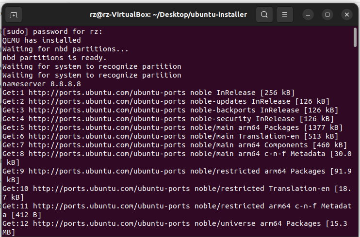 The tool will use QEMU VM to install Ubuntu 24.04 to