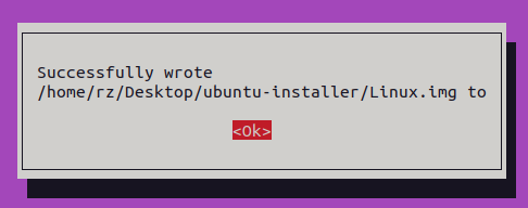 Linux.img.Wait for the Success dialog box. Press OK to continue.