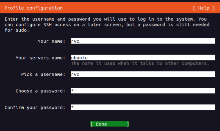 - Enter username (e.g., rvc) and password for the administrator account, then press "Done".