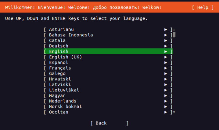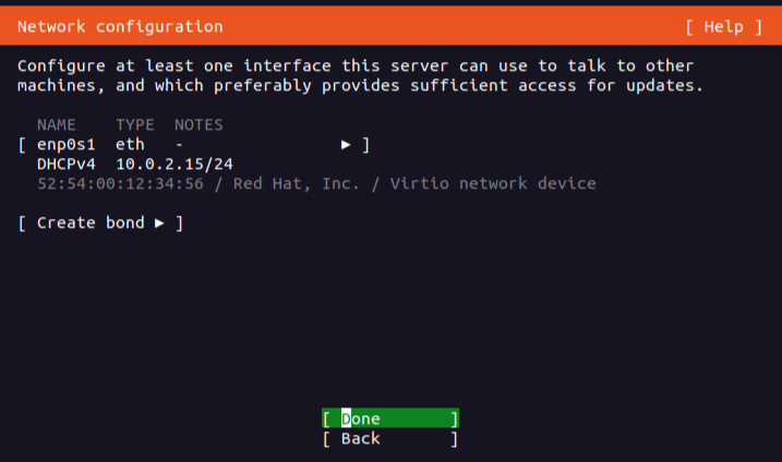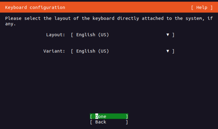 - Select your keyboard configuration (e.g., "English (US)") and press "Done" to continue.
