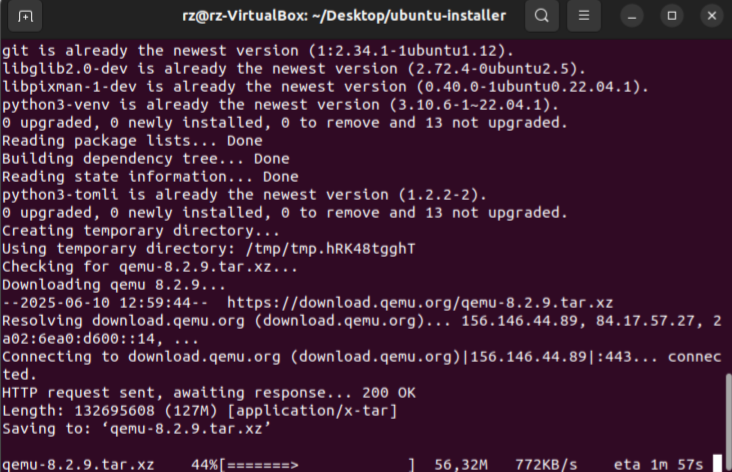 - Enter administrator password. The tool will then download, build, and install QEMU version 8.2.9. If it's already installed, this step will be skipped.
