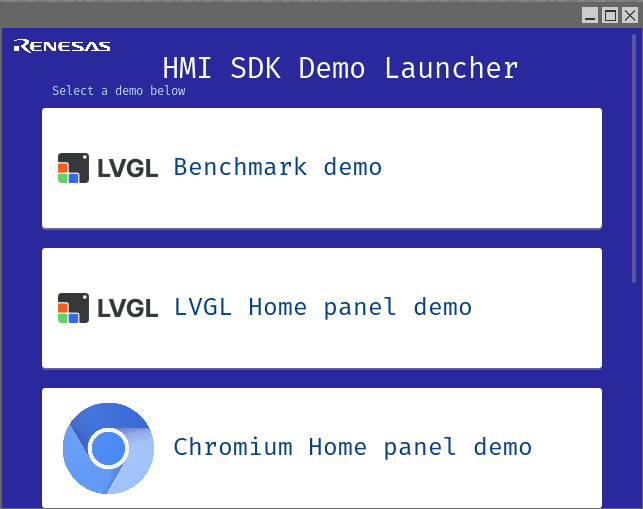 After a few seconds, the HMI SDK Demo Launcher will appear.
