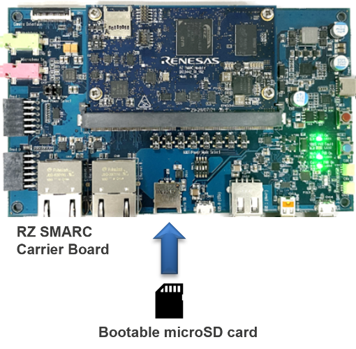 Insert the bootable microSD card into the card slot on RZ SMARC Carrier Board.