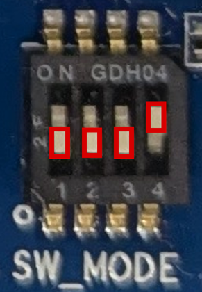To use QSPI boot mode, turn off the power of EVK, then set DIP switch SW_MODE as follows.