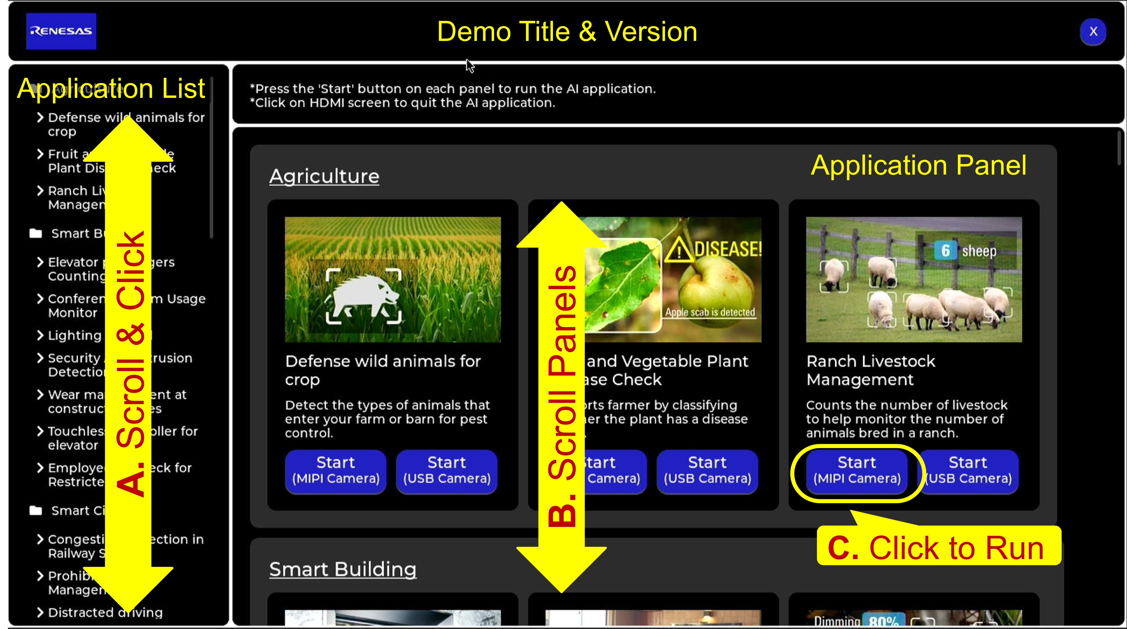 To see a list of applications included in this demo, see List of RZ/V2L AI Applications Demo.