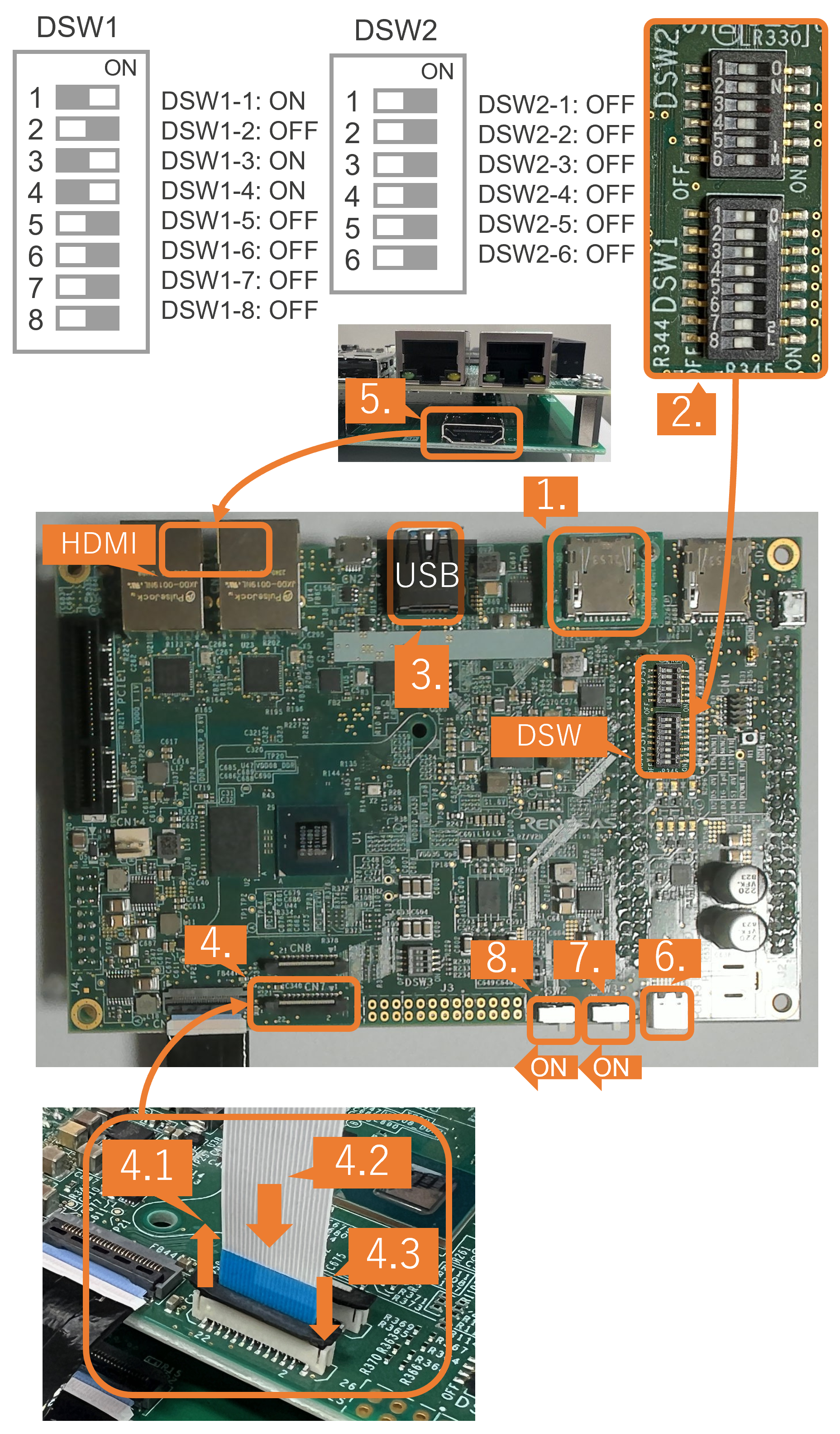 Once the Preparation chapter is complete, you can boot the board in the following way.