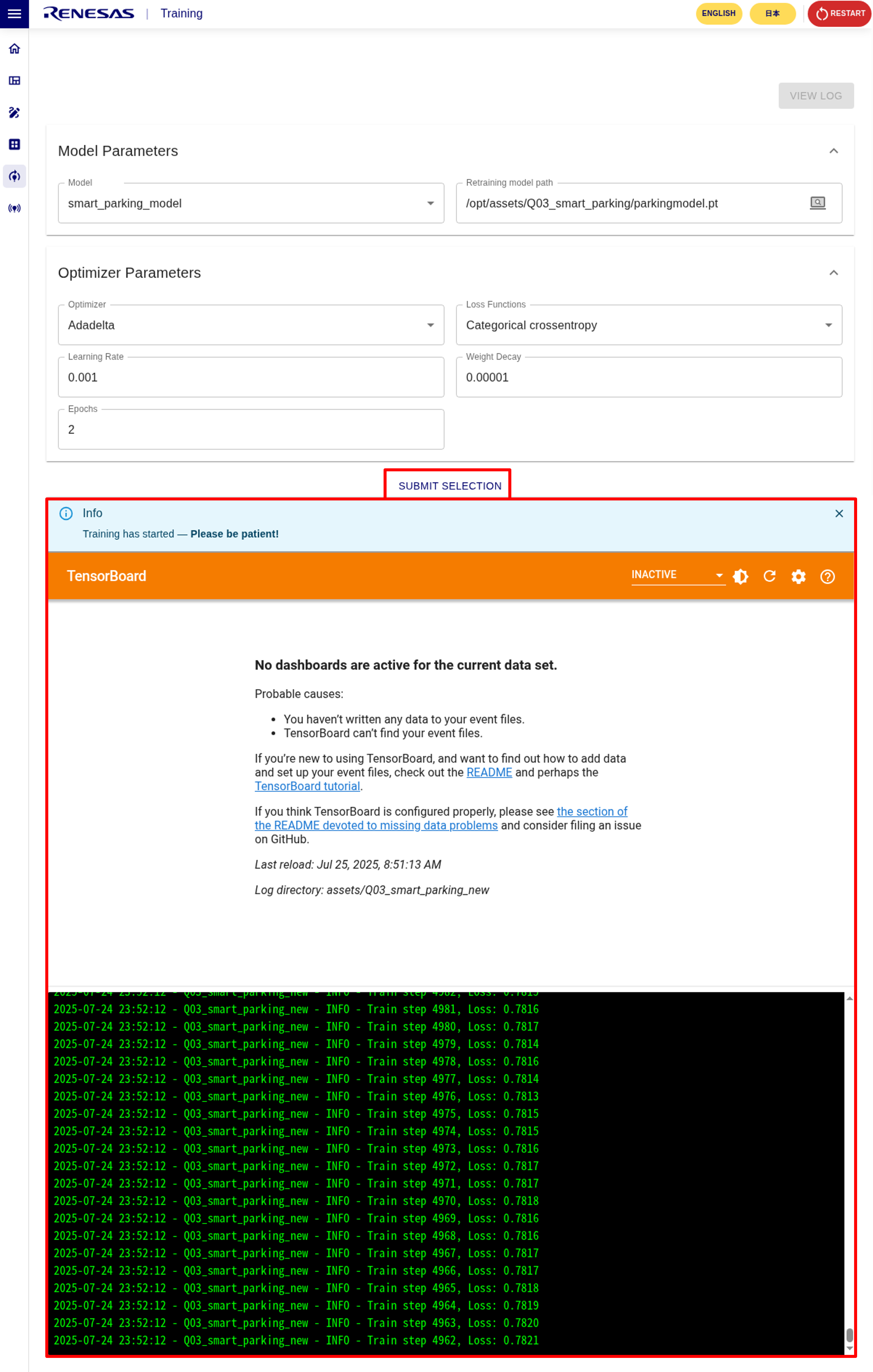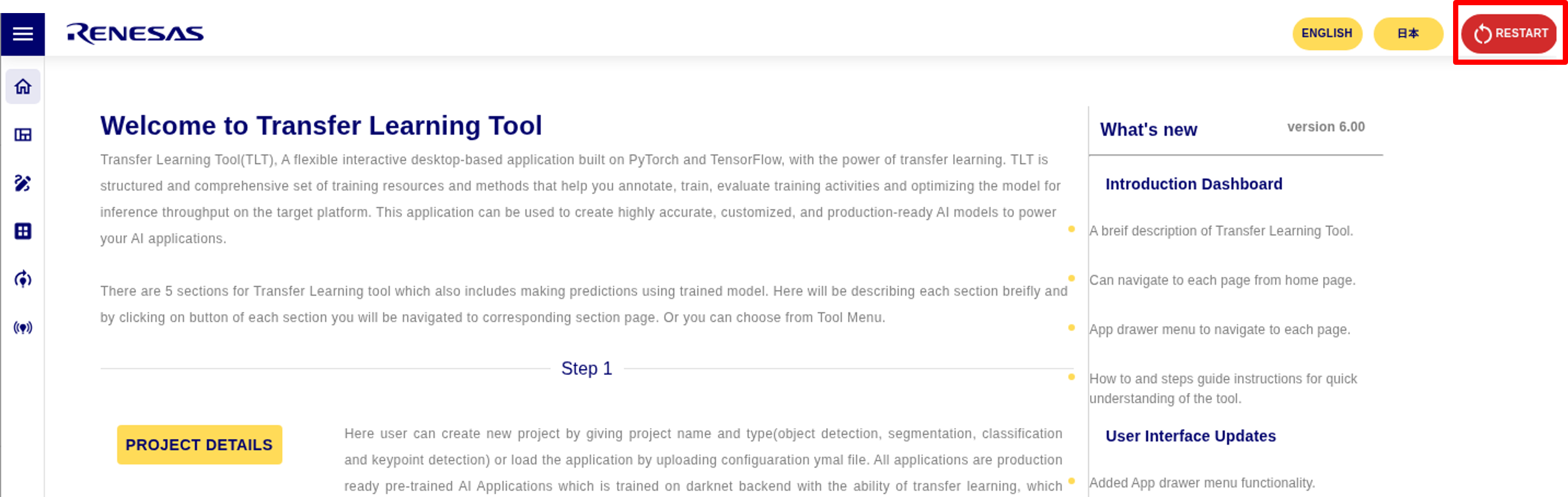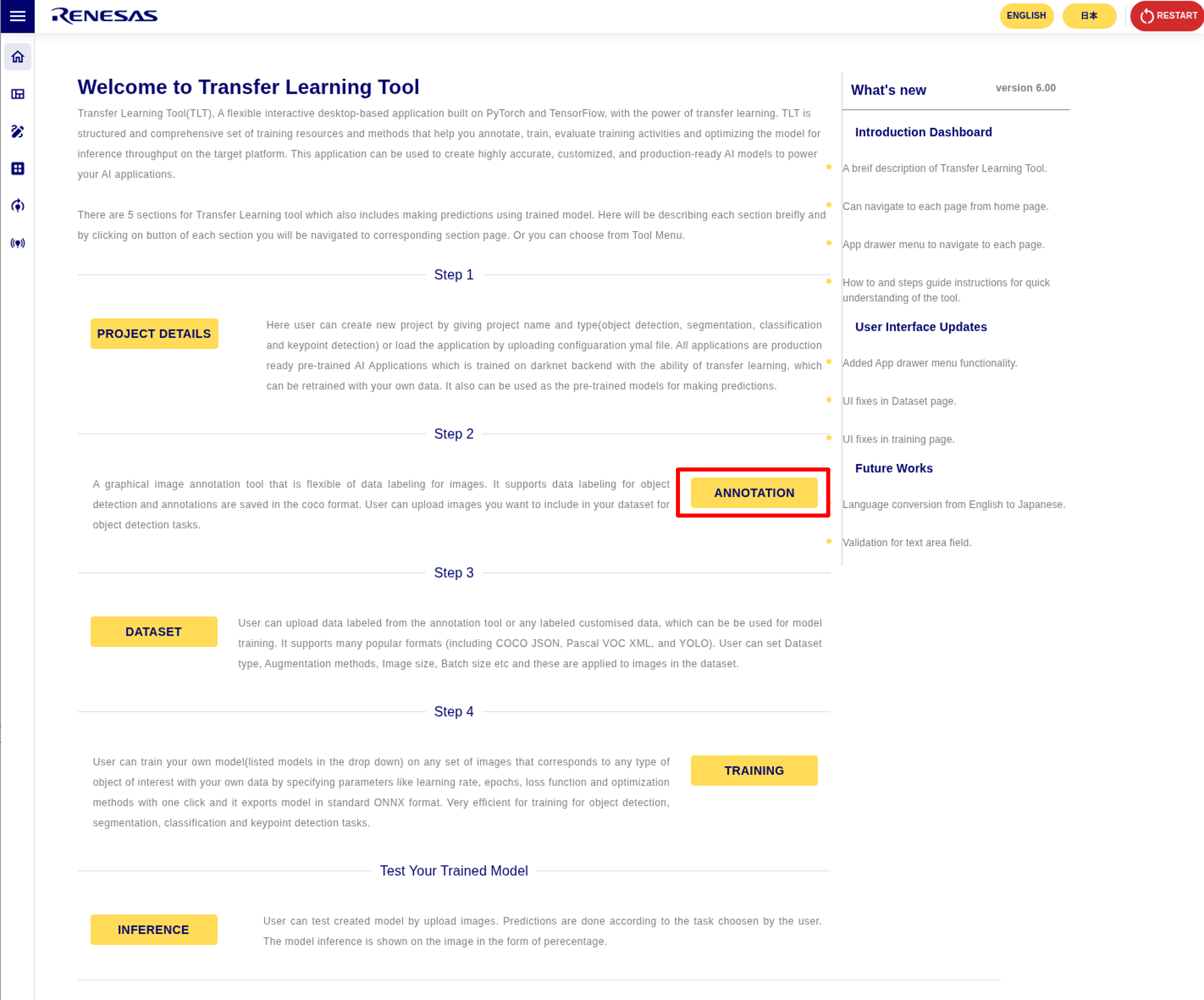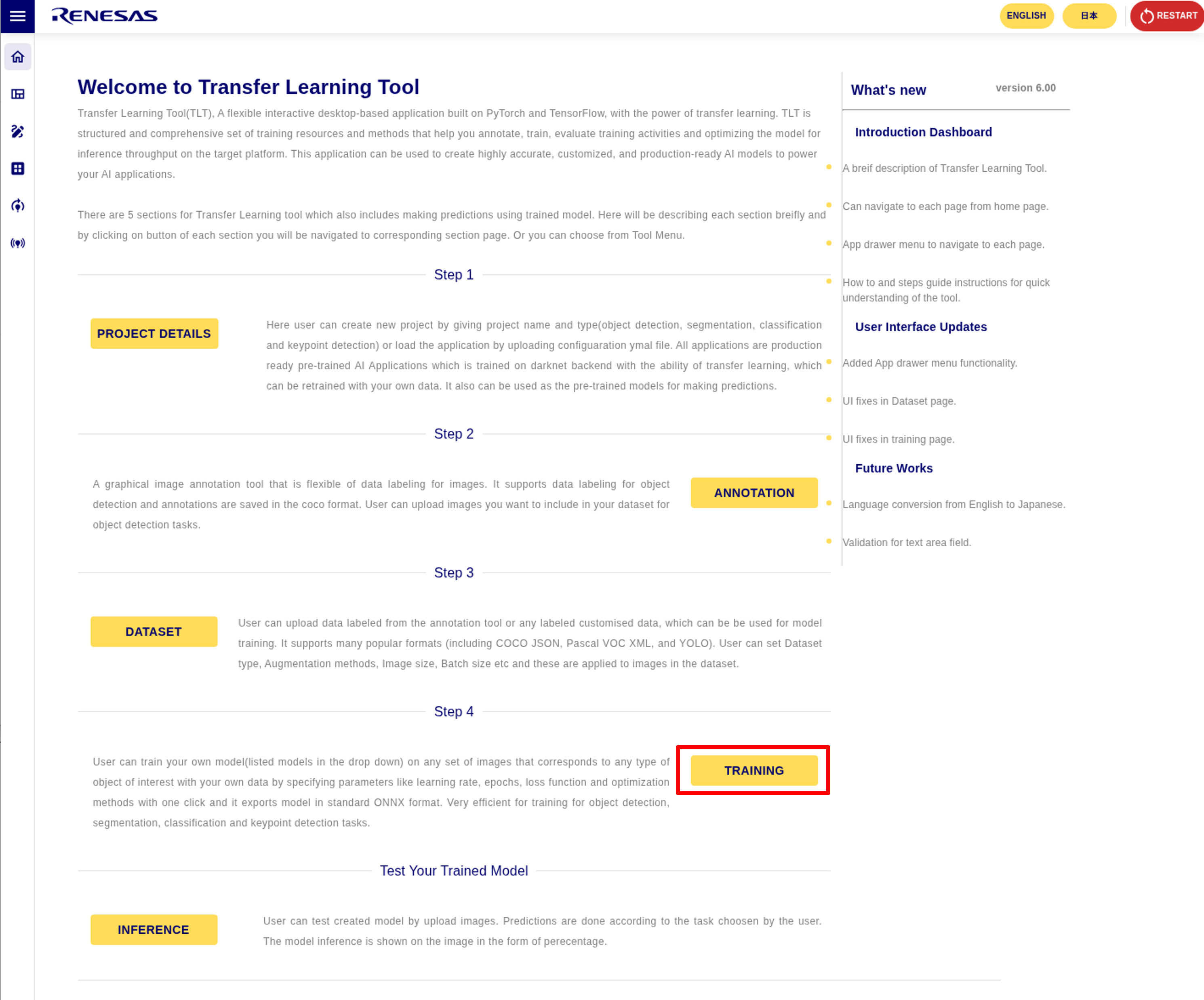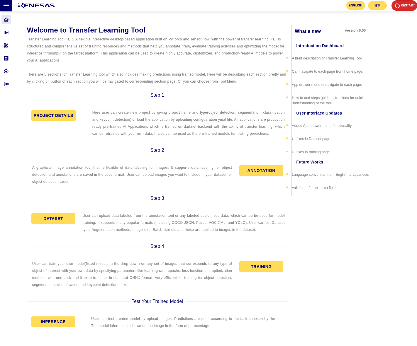RZ/V AI Transfer Learning Tool (TLT) can re-train AI model used in RZ/V AI Applications with different datasets.