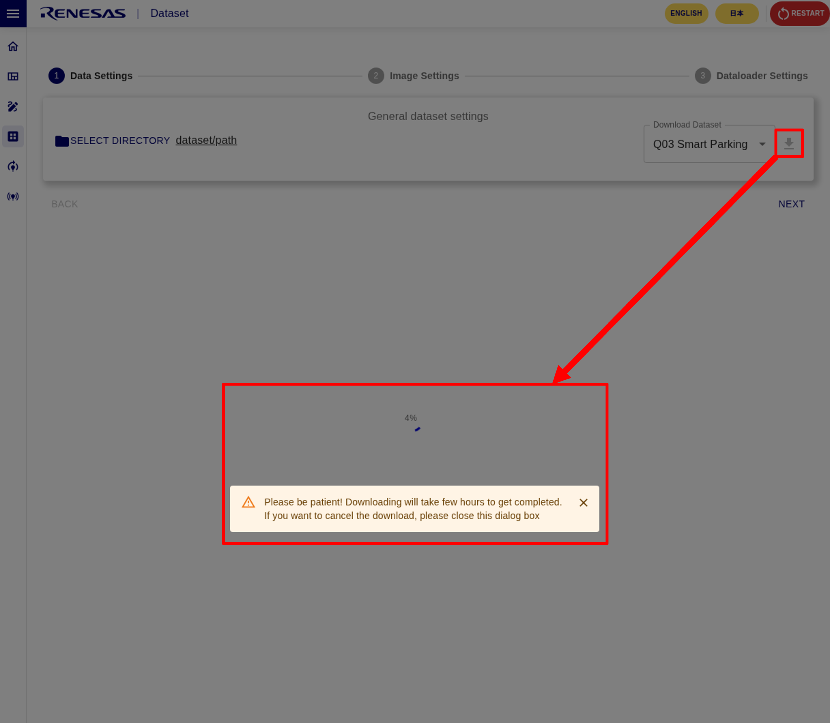 4. Click SELECT DIRECTORY to select the dataset directory, and click NEXT.
