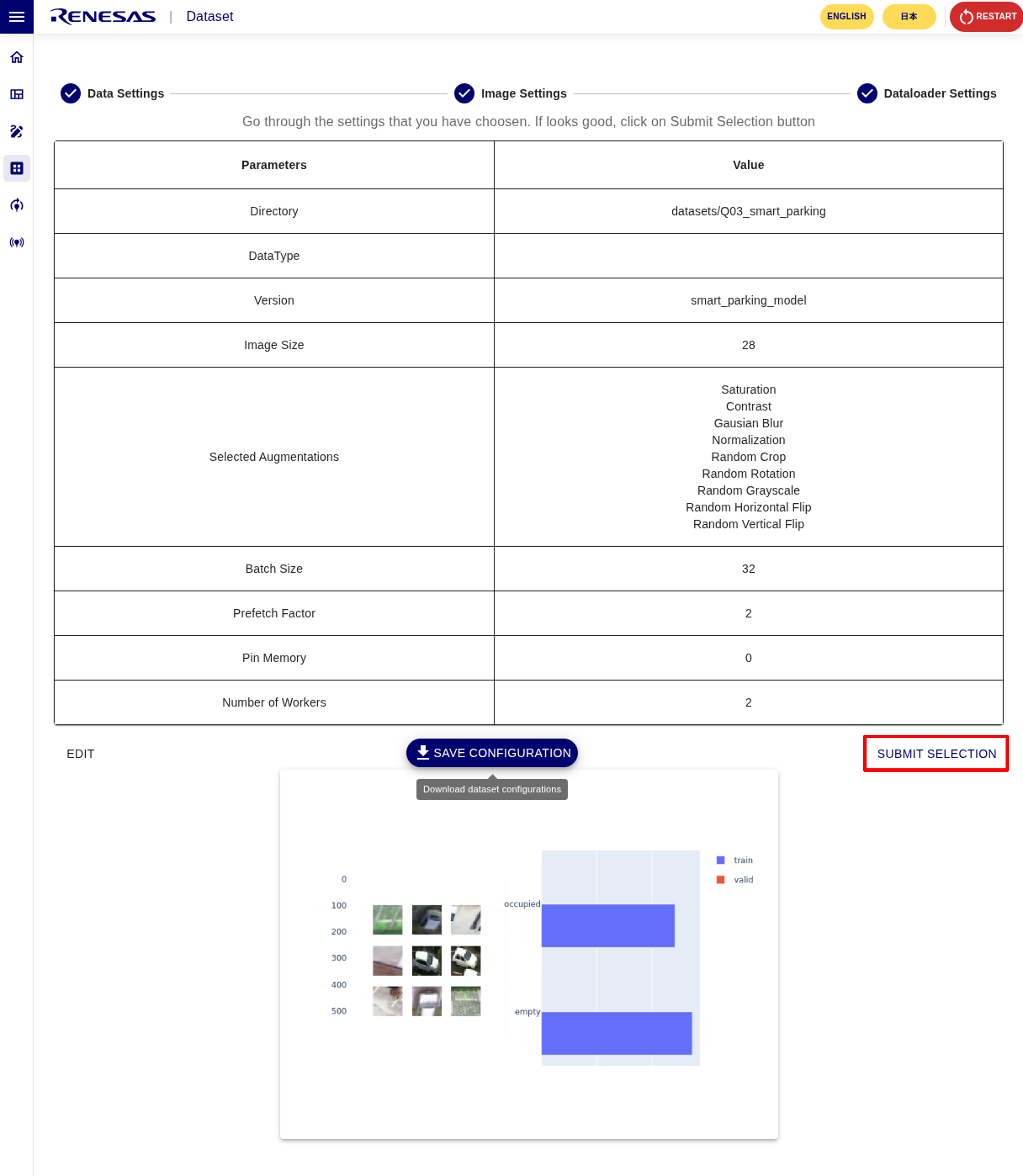 You can save the data set settings by clicking the SAVE CONFIGURATION button.
