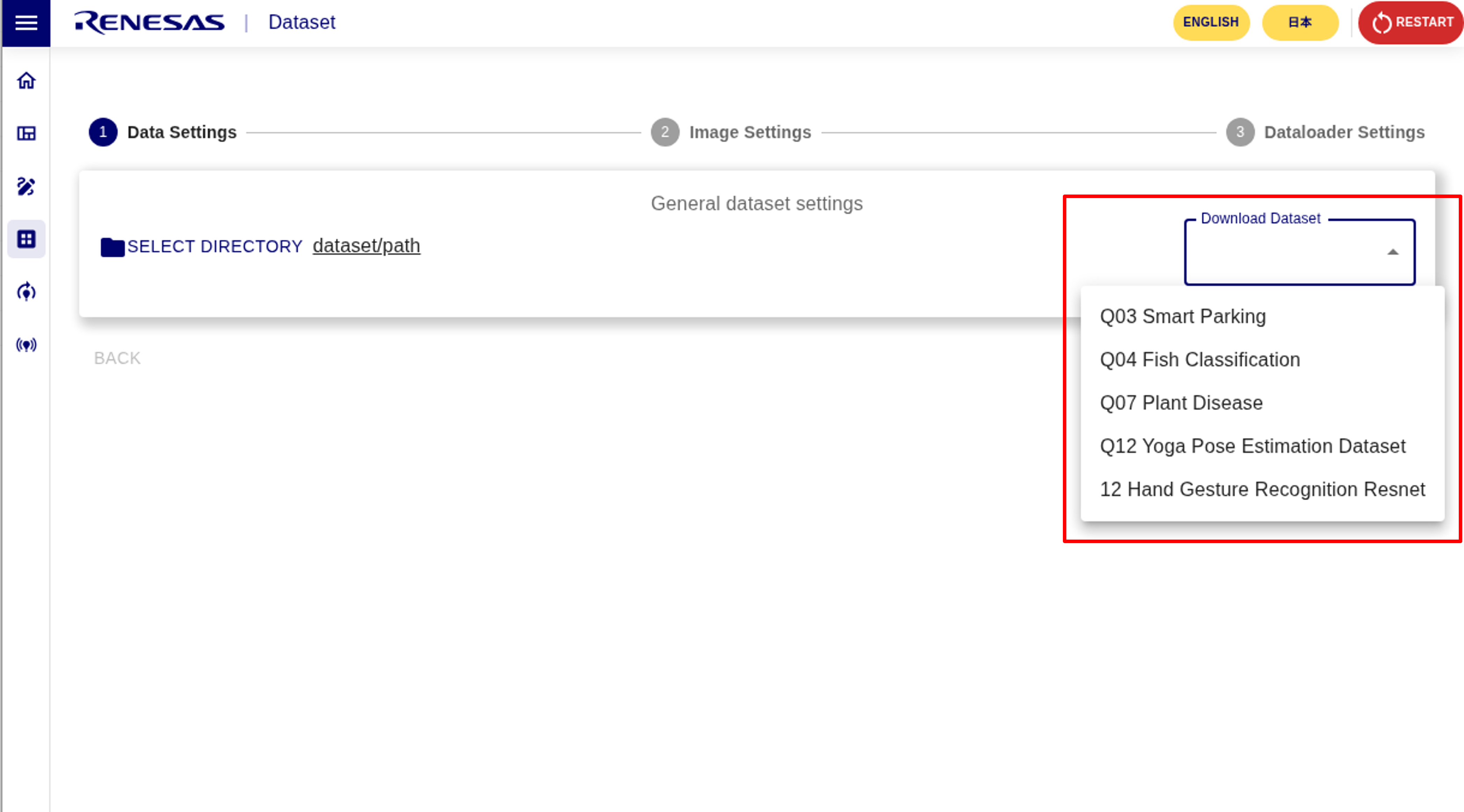 1. Select DATASET.