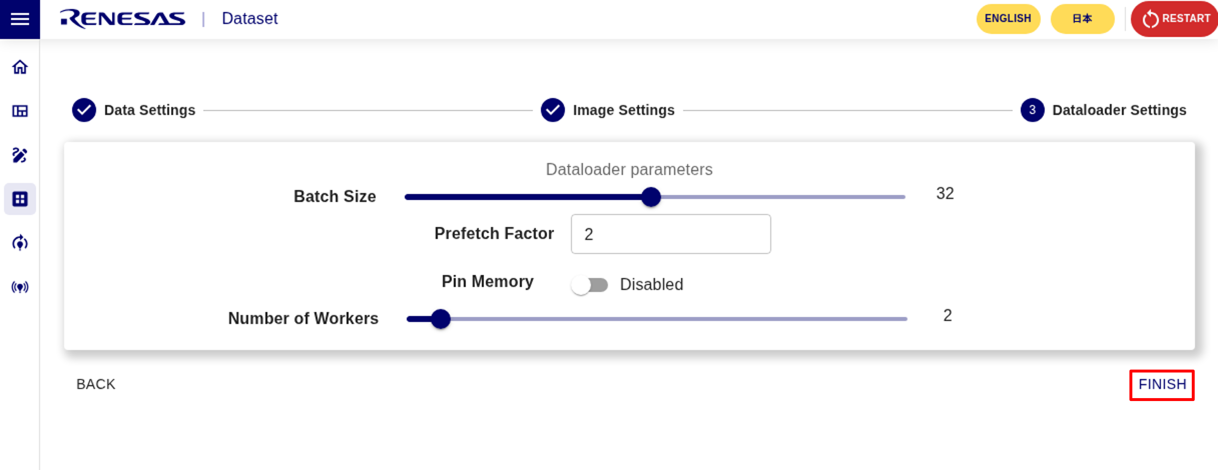 6. Set the dataloader parameters according to your PC environment.