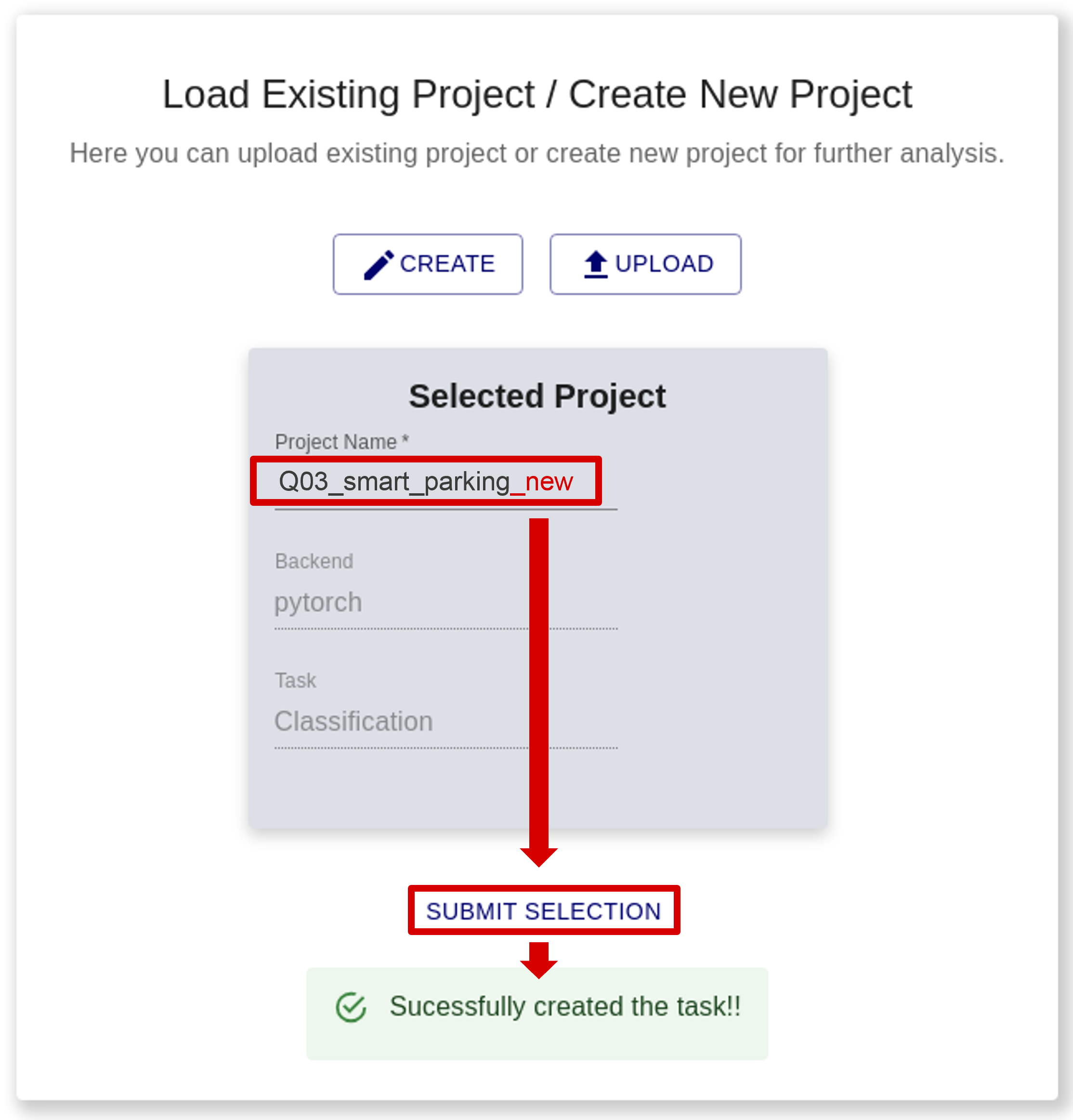 If successful, Successfully created the task!! will be displayed.