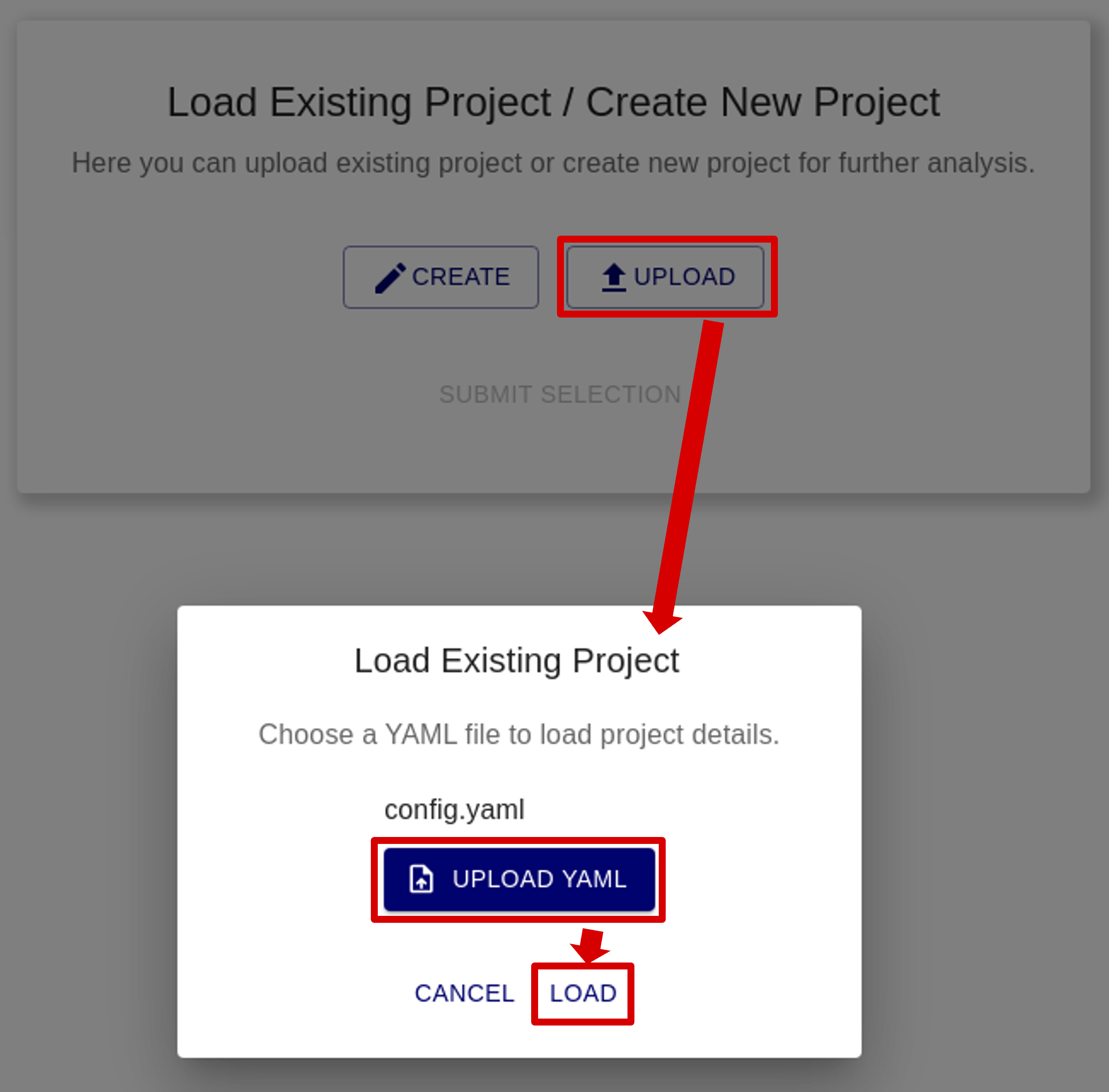 2. After selecting UPLOAD, upload the YAML file in UPLAOD YAML.